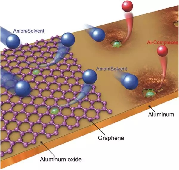 圖1.石墨烯包覆鋁箔集流體的抗電化學腐蝕的示意圖