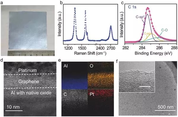 圖2. 通過PECVD法制備石墨烯包覆鋁箔的合成與表征