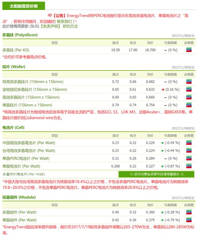 由于電池片價格大幅下跌與激烈競爭,帶動了組件的跌價空間,中小型組件廠家可洽談的空間比例變高,造成市場均價再有著下滑趨勢。由于電池片的下跌主要在單晶電池片部份,因此組件的跌幅也是以單晶組件為主。