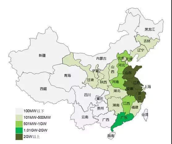 截止2017年上半年各省分布式光伏電站累計(jì)裝機(jī)情況