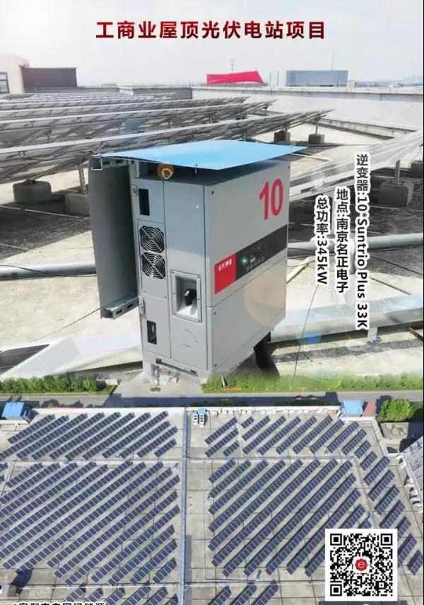 這是南京名正電子有限公司屋頂上的345kW光伏電站,采用自發(fā)自用余電上網(wǎng)的并網(wǎng)模式,這個工商業(yè)屋頂電站的案例可能跟大家之前看過的工商業(yè)屋頂電站不同,因為它的安裝方式比較特別,因為它的光伏組件安裝方向是對角線的走向。為什么這么安裝呢?相信光伏人都已經(jīng)猜到了,那就是最佳安裝角度安裝。