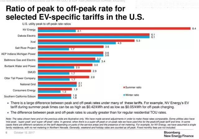 (美國部分針對電動車的峰谷電價比:峰谷電價差最大可達(dá)8.4倍)