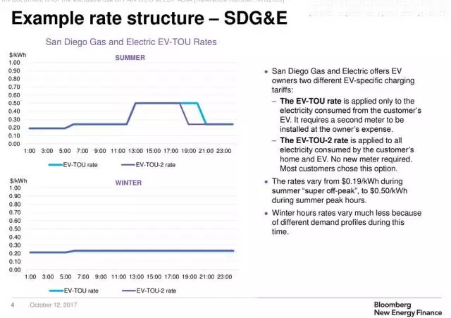 例如美國SDG&E電廠就同時提供以上兩種方案,兩種方案的區(qū)別在于峰谷時間段。據(jù)悉,大多數(shù)家庭會選擇適用于整個家庭的方案,只針對電動汽車充電的方案需要用戶自付費(fèi)另外安裝電表,且峰時時段更長。