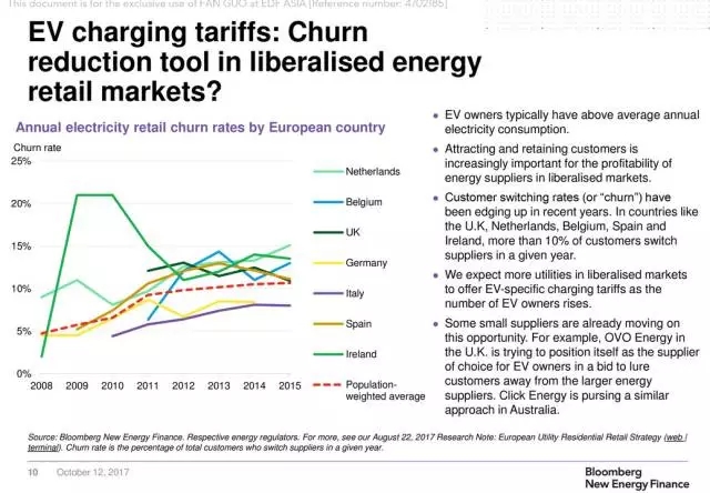 更重要的是,電動汽車家庭每年的用電量普遍更高,在自由的電力市場中,電廠更要想辦法留住這些客戶。在英國、荷蘭、比利時、西班牙和愛爾蘭等國家,每年更換電力供應(yīng)商的用戶比例超過了10%。OVO Energy已經(jīng)在一項(xiàng)競標(biāo)中將自身定位為電動汽車用戶的首選電力供應(yīng)商,雄心勃勃準(zhǔn)備干掉那些大型能源企業(yè)。