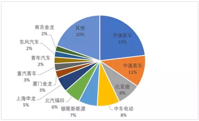 2017年1-10月純電動(dòng)客車車企市場(chǎng)份額