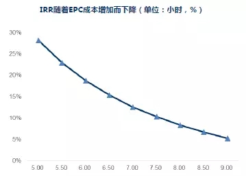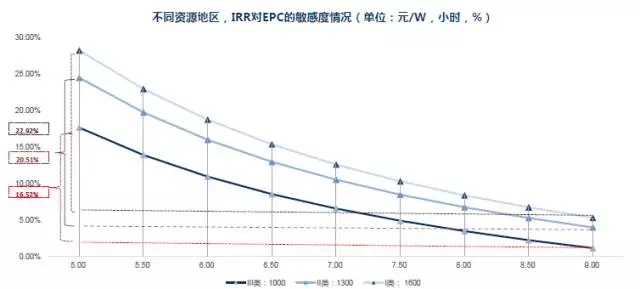 最后綜合來看,資源越好的地區(qū),IRR對EPC成本的敏感度越高。