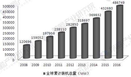 2008-2016年全球風(fēng)電累計裝機容量(單位:MW)