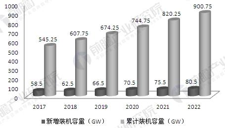 2017-2022年全球風(fēng)電新增和累計裝機容量預(yù)測(單位:GW)