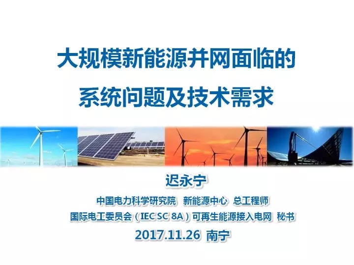 中國儲能網(wǎng)訊:日前,中國電科院新能源中心總工程師遲永寧教授作了題為“大規(guī)模新能源并網(wǎng)面臨的系統(tǒng)問題及技術(shù)需求”的報(bào)告,經(jīng)中國電機(jī)工程學(xué)會及專家本人授權(quán),分享給大家。