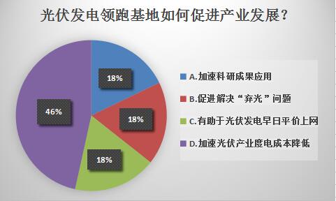 如圖所示,46%的受訪者認為,加速光伏產(chǎn)業(yè)度電成本降低;同比例的受訪者認為,加速科研成果應(yīng)用、促進解決“棄光”問題、有助于光伏發(fā)電早日平價上網(wǎng)是促進產(chǎn)業(yè)發(fā)展的關(guān)鍵。