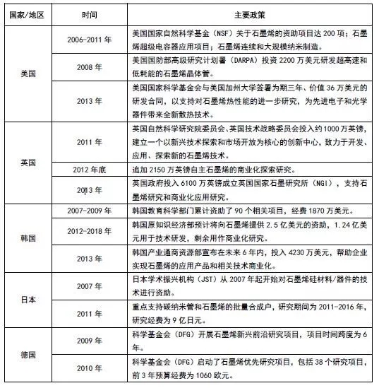 世界各國石墨烯產(chǎn)業(yè)扶持政策