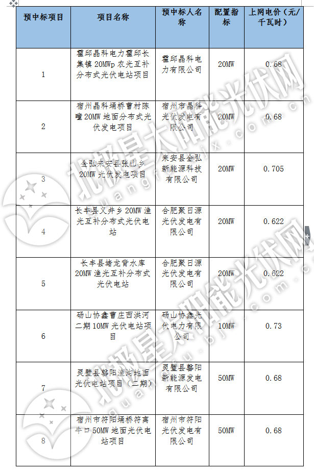 中國儲能網(wǎng)訊:日前,安徽合肥公共資源交易中心公布安徽省2017年集中式光伏電站新增建設規(guī)模配置項目中標(成交)公告中標公告。