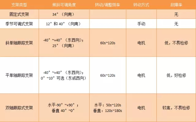 據(jù)了解,目前常用的支架類(lèi)型有四種,固定式支架、季節(jié)可調(diào)式支架、單軸跟蹤式支架(分為平單軸和斜單軸)和雙軸跟蹤式支架。其中固定式支架維護(hù)量很小,市場(chǎng)上流行的雙軸跟蹤支架,還有斜單軸、平單軸的維護(hù)量比較大。季節(jié)可調(diào)式支架一次性的維護(hù)量比較大,但是其投資成本和固定支架的投資成本基本相同。