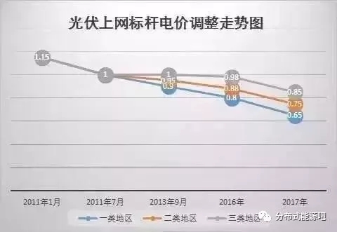 光伏上網(wǎng)標(biāo)桿電價(jià)調(diào)整走勢(shì)圖