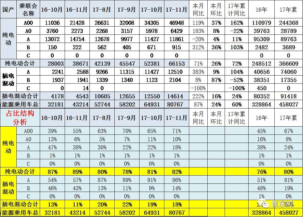 中國儲能網(wǎng)訊:根據(jù)乘聯(lián)會廠家月度批發(fā)數(shù)據(jù)初步分析,17年新能源乘用車銷量實(shí)現(xiàn)10個(gè)月的月度連續(xù)環(huán)比增量, 11月銷量達(dá)到8.1萬,環(huán)比10月增長1.6萬臺,同比16年11月增速87%,達(dá)到9成的增速。在17年補(bǔ)貼政策重新規(guī)范調(diào)整和市場需求逐步回歸正常情況下,各廠家努力實(shí)現(xiàn)新能源車的新品布局突破,新能源車產(chǎn)銷呈現(xiàn)頑強(qiáng)走強(qiáng)的特征。