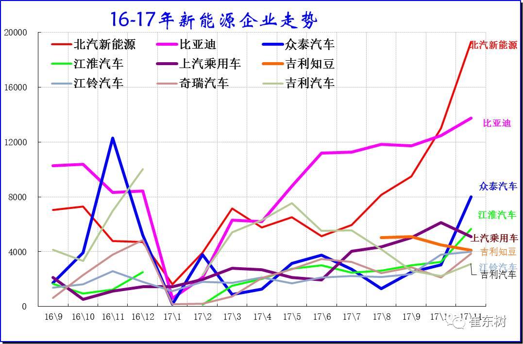 17年純電動(dòng)新能源車企業(yè)的表現(xiàn)較強(qiáng),尤其是以北汽和江淮等主力國企的新能源表現(xiàn)較強(qiáng)。民企的眾泰也是表現(xiàn)較優(yōu)秀。
