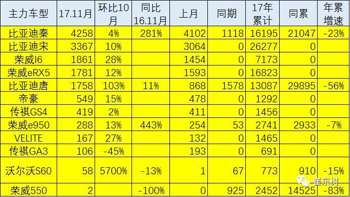 4. 11月純電動(dòng)主力車型批發(fā)銷量增長很強(qiáng)