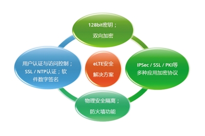 和常規(guī)通用的無線網(wǎng)絡(luò)有很大不同,無線eLTE采用了四大安全手段:128bit密鑰雙向加密并不定時(shí)更新、多種應(yīng)用加密協(xié)議確保端到端業(yè)務(wù)傳輸安全、無線基站到安全網(wǎng)關(guān)設(shè)立安全環(huán)境、通過訪問控制、日志與告警等手段確保操作維護(hù)安全。