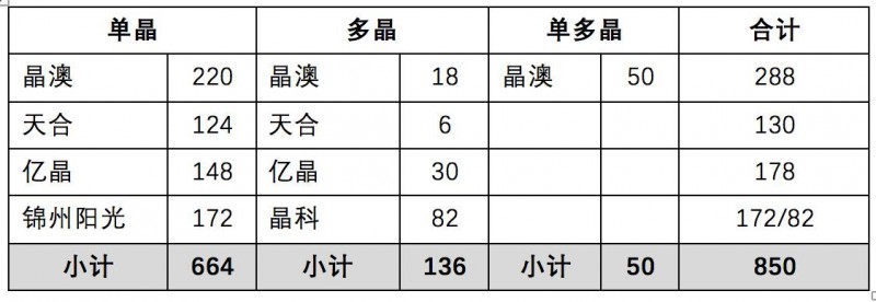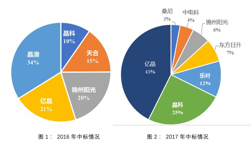 2)億晶、晶科、錦州陽(yáng)光三家兩年都中標(biāo),億晶、晶科的占比翻番,而錦州陽(yáng)光占比降低;