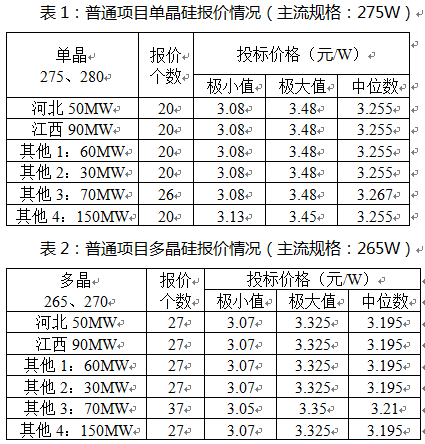 2)最低、最高投標(biāo)價(jià)的差值高達(dá)0.16~0.85元/W,主要集中在0.4元/W!