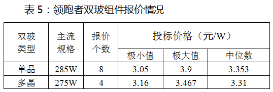表6:2017年國(guó)電投組件投標(biāo)價(jià)格開(kāi)標(biāo)結(jié)果