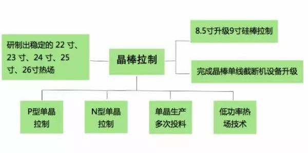 億晶儲(chǔ)備有P型單晶拉制、N型單晶拉制、單晶生產(chǎn)多次投料技術(shù)、低功率熱場(chǎng)技術(shù)等,完成了對(duì)晶棒單線截?cái)鄼C(jī)的設(shè)備升級(jí),開(kāi)展了8.5寸升級(jí)9寸單晶硅棒的拉制工作。