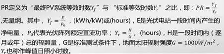 PR還可以表示為光伏電站發(fā)電量與基于光伏方陣額定功率的直流發(fā)電量的比值,因此,性能比還可以定義為光伏電站綜合能量效率。