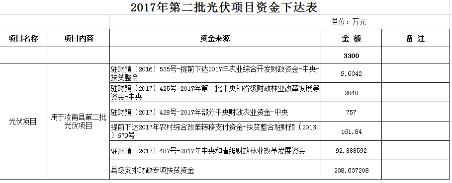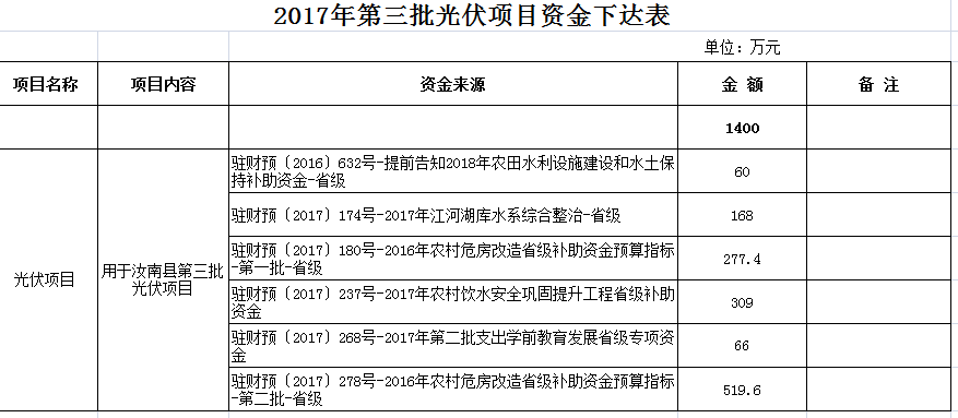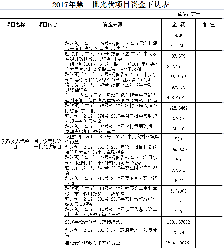 中國儲能網(wǎng)訊:汝南縣財政局、汝南縣扶貧開發(fā)辦公室日前聯(lián)合下發(fā)通知,將第一批光伏項目資金6600萬元、第二批光伏項目資金3300萬元、第三批光伏項目資金1400萬元下達(dá)給汝南縣發(fā)改委。此項目資金分別用于2017年第一、二、三批光伏項目建設(shè),請嚴(yán)格按照脫貧攻堅領(lǐng)導(dǎo)小組批復(fù)的實施方案內(nèi)容實施,加快項目實施進(jìn)度,不得擅自變更項目內(nèi)容;嚴(yán)格按照《河南省扶貧資金管理辦法》,管理使用財政扶貧資金,實行縣級報賬制,嚴(yán)格招投標(biāo)管理制度,嚴(yán)禁擠占、挪用、截留財政專項扶貧資金等違規(guī)違紀(jì)行為發(fā)生,切實加強扶貧資金使用管理,專款專用,專賬核算,確保資金安全使用。