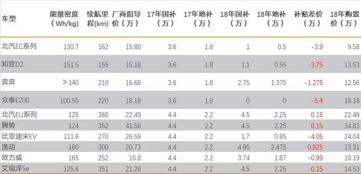 · 車型優(yōu)化設(shè)計(jì)來實(shí)現(xiàn)成本與補(bǔ)貼的均衡:200公里以下車型將退出舞臺(tái),A00車型全面向200公里進(jìn)軍,而原有的250公里A級(jí)車將向300公里進(jìn)行,續(xù)航里程將成為車企18年最核心考量。此外,車企也會(huì)通過輕量化等方式降低整車的噸百公里能耗。通過重新設(shè)計(jì)車型,提升相應(yīng)技術(shù)指標(biāo),以確保成本與補(bǔ)貼比例最優(yōu)化。