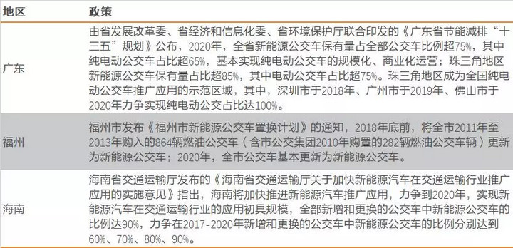 表5:國(guó)內(nèi)部分地區(qū)電動(dòng)公交車相關(guān)規(guī)劃