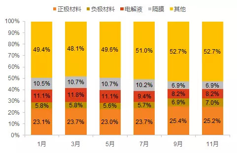 圖6:對(duì)比2016年底電池材料與電池價(jià)格變動(dòng)情況