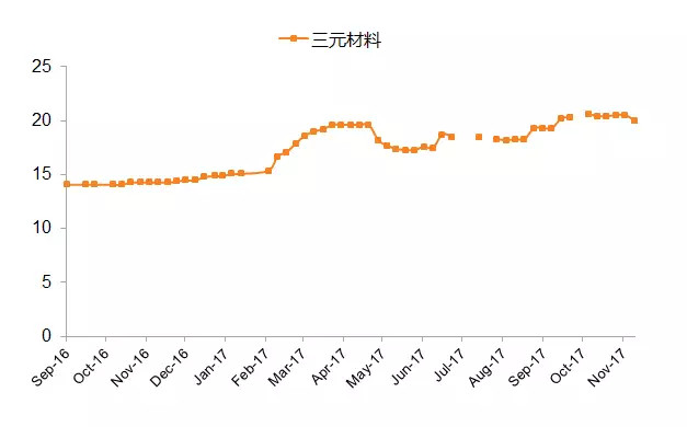 圖16:正極材料價(jià)格走勢(shì)(單位:萬元/噸)