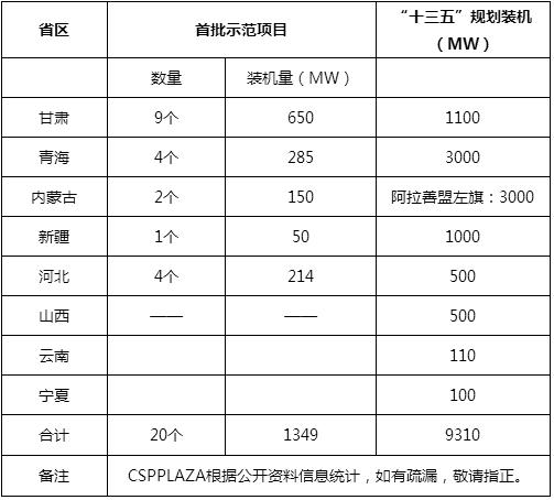 以下為各省區(qū)“十三五”光熱發(fā)電規(guī)劃情況簡介: