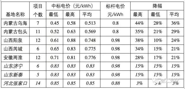 值得注意的是,2017年的領(lǐng)跑者中標(biāo)電價(jià)比當(dāng)時(shí)的標(biāo)桿電價(jià)下降了15%~44%,各基地平均下降15%~36%(不含河北奧運(yùn)走廊)。