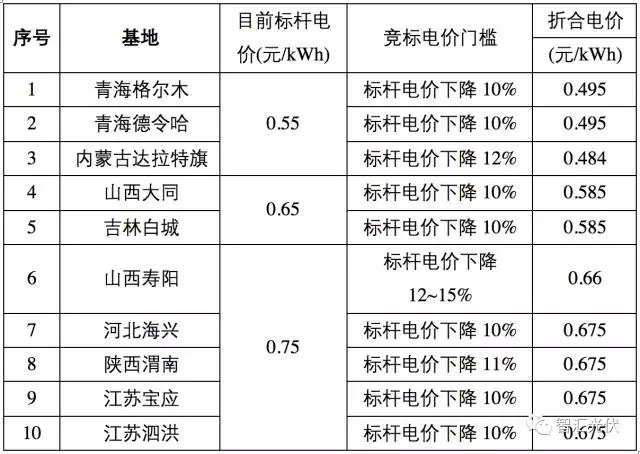 2018年的領(lǐng)跑者基地中,各基地都提出競(jìng)標(biāo)電價(jià)至少要低于標(biāo)桿電價(jià)的百分比,如下表所示。