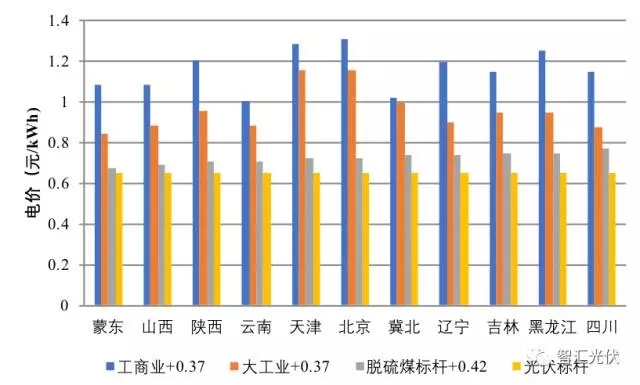 工商業(yè)電價(jià)+0.37比0.75元/kWh高0.33~0.50元/kWh;
