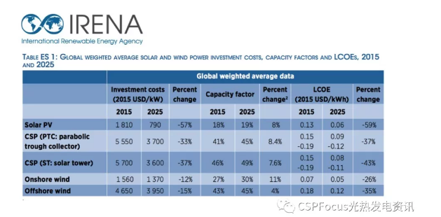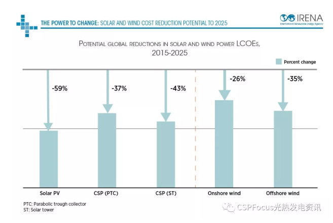 中國儲能網(wǎng)訊:根據(jù)國際可再生能源署(IRENA)發(fā)布的報告預(yù)測,光伏、光熱、陸上和海上風(fēng)電成本將大幅度下降,到2025年的十年期間,度電成本將分別下降26%-59%不等。