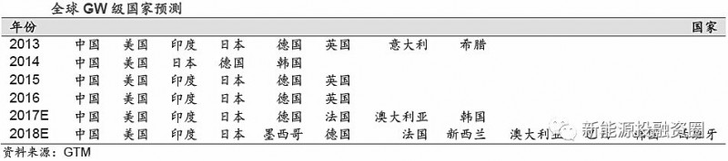 歐洲新興國家需求增加,荷蘭西班牙將成為GW 級(jí)國家:為實(shí)現(xiàn)2020 年實(shí)現(xiàn)能源使用的20%來自可再生能源目標(biāo),各國積極制定計(jì)劃。