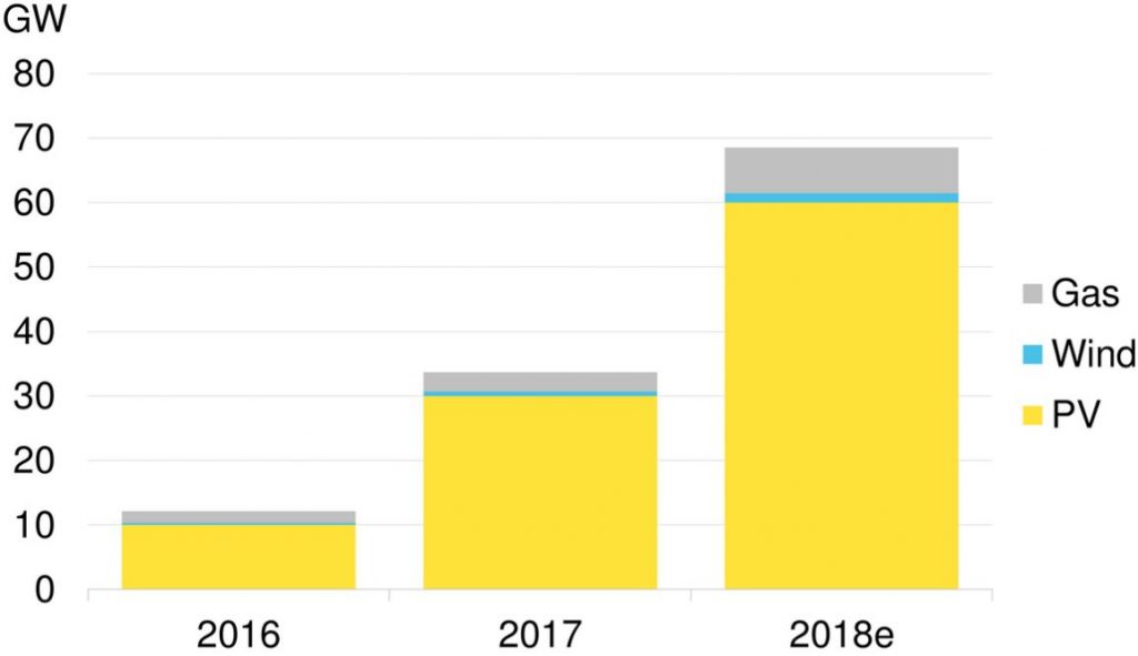 BNEF認為,隨著新政策的實施,2018年,屋頂太陽能裝置將激增70%達到24吉瓦。