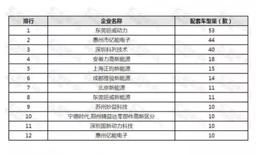 圖4: “BMS+PACK”模式類(lèi)占車(chē)型量排行前10家企業(yè)