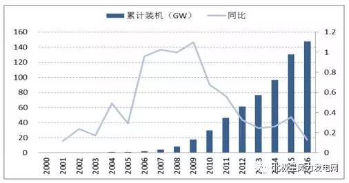 2000~2016 全國(guó)風(fēng)電累計(jì)裝機(jī)情況