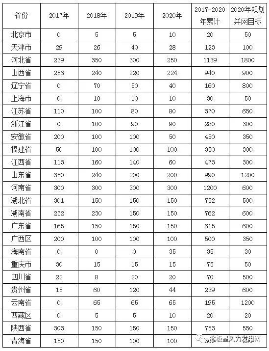 2017~2020 年風(fēng)電新增建設(shè)規(guī)模方案(萬(wàn)千瓦)
