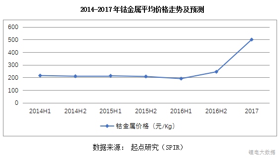 鈷價(jià)在2016年期間處于歷史低位,受周期性因素影響,估價(jià)有所反彈。