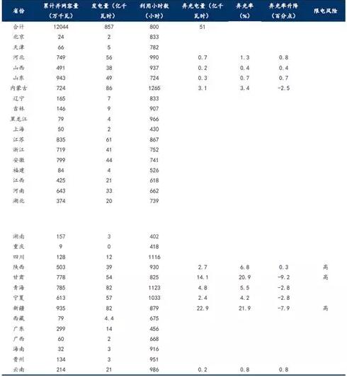 從裝機量來看,可以明顯看出以往的資源優(yōu)勢集中,且非限電區(qū)域成為大家主要集中開發(fā)的區(qū)域,所以也是造成新能源在大環(huán)境棄光率降低的情況下,山東等地區(qū)棄光率反生。其次,江蘇和安徽已成為新的熱點區(qū)域。