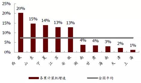 全年累計裝機增速最快五名與最慢五名地區(qū)