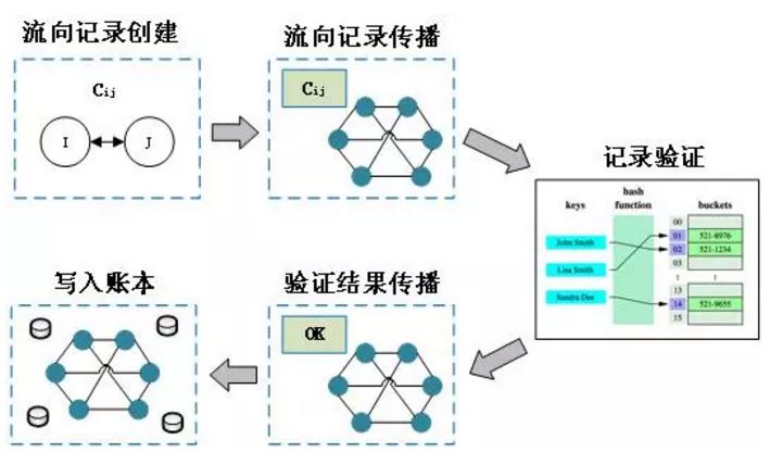 基本模型與比特幣等公有鏈相似,但本解決方案采用協(xié)議鏈模式,加入節(jié)點需要經(jīng)過實體管理中心許可,或者說所有節(jié)點都是實名制的,不存在隨意加入的機制。此外,由于電力供應的實時性要求,本解決方案采用的是實時動態(tài)分布式機制,實現(xiàn)該機制的技術方法難度較大,需要與比特幣完全不同的快速記錄驗證方法。