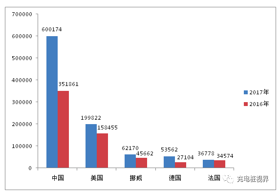 圖表 1全球新能源乘用車2017年與2016年銷量對比(單位:輛)