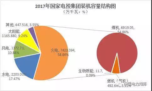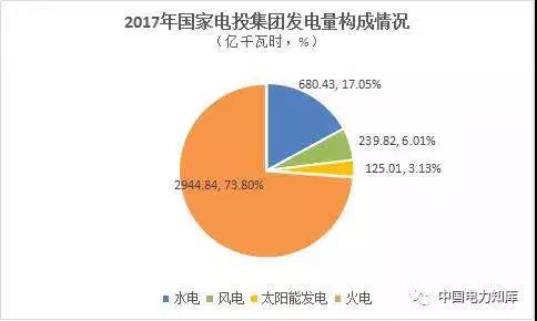 2017年,華能集團電力投資380.46億元,其中,水電102.89億元,火電104.22億元,風電97.31億元,太陽能發(fā)電59.76億元,其他16.28億元;大唐集團電力投資313.92億元,其中,水電62.63億元,火電148.79億元,風電92.7億元,太陽能發(fā)電9.8億元;華電集團電力投資332.53億元,其中,水電92.96億元,火電160.31億元,風電45.59億元,太陽能發(fā)電33.66億元;國家電投集團電力投資778.76億元,其中,水電26.16億元,火電225.71億元,風電177.4億元,太陽能發(fā)電265.42億元,其他63.87億元。國家能源集團電源投資占總投資68%,水電、風電等可再生能源投資占主業(yè)投資31%。