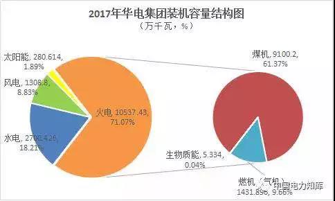 2017年,華能集團裝機容量為17181.917萬千瓦,同比增長3.79%,其中,水電2226.08萬千瓦,火電12927.648萬千瓦,風電1785.104萬千瓦,太陽能發(fā)電243.085萬千瓦;大唐集團裝機容量為13775.814萬千瓦,同比增長6.23%,其中,水電2685.099萬千瓦,火電9470.48萬千瓦,風電1519.665萬千瓦,太陽能發(fā)電100.57萬千瓦;華電集團裝機容量為14827.27萬千瓦,同比增長3.82%,其中,水電2700.426萬千瓦,火電10537.429萬千瓦,風電1308.8萬千瓦,太陽能發(fā)電280.614萬千瓦;國家電投集團裝機容量為12612.51萬千瓦,同比增長8.14%,其中,水電2203.003萬千瓦,火電7423.394萬千瓦,風電1372.71萬千瓦,太陽能發(fā)電1165.88萬千瓦,其他447.516萬千瓦。