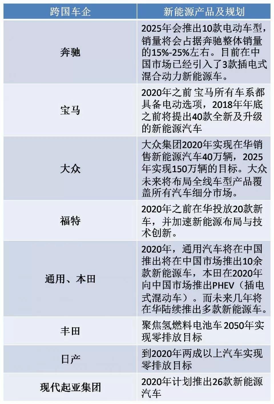 跨國車企新能源規(guī)劃